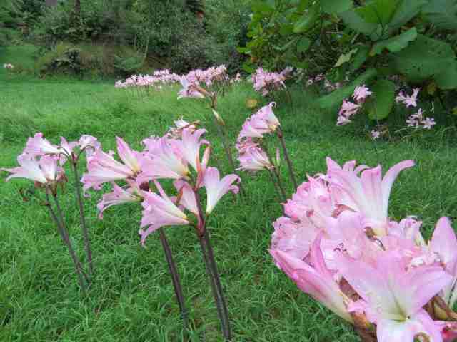 Some are short in season but somewhat glorious. The belladonnas – Amaryllis belladonna -are more wildflower or roadside plant than one for cultivated garden but that does not diminish their charm on the day. They last well in a vase, too.