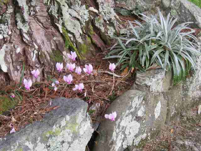 As the big blowsy bulbs of summer pass over, the autumn snowflakes are joined the by the dainty Cyclamen hederifolium which we have in abundance – decades of letting it gently seed around to naturalise.