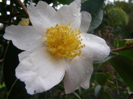 We have it somewhere in the garden but we appear to have mislaid it – which is to say that Mark can’t remember where he planted it and neither of us have come across it yet. We have what we think is C.gauchowensis in flower. It is another pristine white single bloom as many of the species are , on a narrow, columnar bush. Unfortunately it does get easily weather-marked. Few of the species are inherently spectacular when compared to the modern cultivars on offer but they have a quiet charm which we enjoy.
