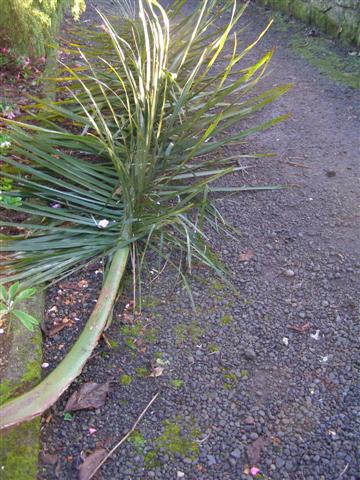 We enjoy our queen palms (Syagrus romanzoffiana), now of rather towering stature at about 20 metres high and half a century old. But their falling fronds can be a bit of a menace and there is certainly no way of getting up to groom those hanging about waiting to fall. You would not want to be underneath one because they weigh a surprising amount at the base and crash down with considerable force – taking out a large wodge of a camellia below recently. Mark has been moved to comment that there are rather a lot of vegetable time bombs planted very close to houses and apartments in Auckland, often by landscapers who all too frequently lack the