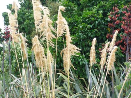 1) Inspired by a tree she saw in London, presumably made with pampas plumes, Camilla fancied trying an alternative to the traditional pine branch or the tacky tinsel alternative. As pampas is now banned in this country, we used toetoe plumes. Gathering the toetoe was the most difficult part of construction, especially with all the recent rain.