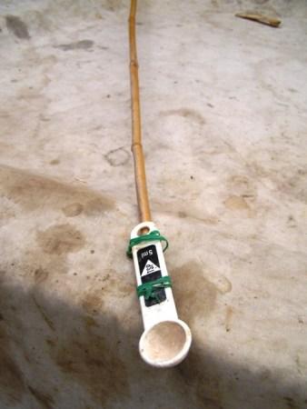 3) Mark has a measuring spoon wired to a pole about two metres long. You need a steady hand but this means he never has to get near the nest and he has never been stung using this approach. It takes under half a teaspoon to kill most nests, depending on the accuracy of your placement.