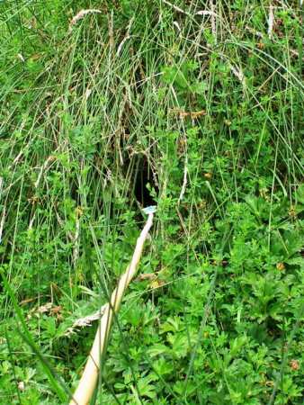 5) If you want to avoid using insecticide, you can kill them with petrol fumes but you have to get closer and the risk of being stung is higher. Partially fill a small bottle with about 200ml of petrol and plug the top of it into the hole so the fumes and liquid flow in and it blocks the exit. The biggest drawback here is that you need to do this on dusk or at night when all the wasps are in residence. It is the fumes that kill them. Do not set fire to it. Move very quietly and lightly. Generally nests have guard wasps which will fly straight at you. For this reason, Mark strongly favours the insecticide in the morning.