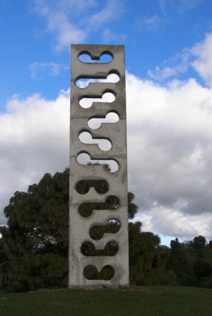 The Iona Cross is distinctly monumental construction made by Clive, standing nearly two and a half metres tall. It is concrete and was poured flat before being moved to its location. By contrast, the Polynesian influenced vertical panel was boxed up and poured in its final location. These are just two of a series of installations surrounding his earth labyrinth which reference the ancestry of Clive and Nicki’s first grandchild.