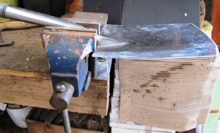 2) It helps to be able to hold larger tools firmly while sharpening and we prefer to do this in a simple workbench vice.