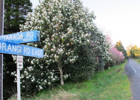 To the left is one of our road boundaries. Below right is the neighbour across the road. Until earlier this year, it was well treed, including mature kahikatea and tawa. That was all cleared to make way for huge power pylons to bring a secure power supply to the petrochem developments. We are lucky. We can’t see this from our property but others are not so fortunate. Their rural outlooks now feature pylons marching across the landscape. And guess what, the stringing of the wires was done by helicopter. It felt like Apocalypse Now living here on those days.