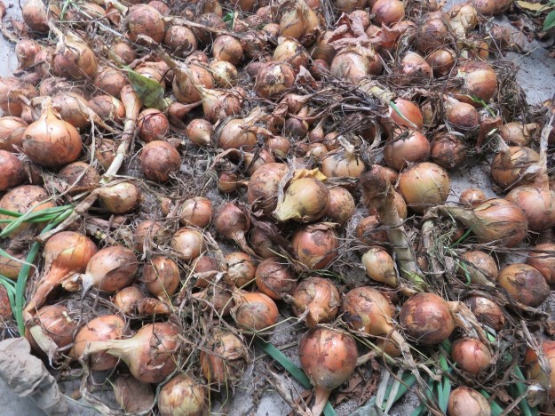 Waste is much on our mind here. Hence the onions seen above. And the delight at a successful soy bean harvest. Why onions and soy beans when they are extremely cheap to buy, you may wonder. Why not grow the higher value crops? We grow those too, or at least Mark does. Space is not a problem for us. But commercial onions are reputed to be one of the most heavily sprayed crops and we know ours are spray-free. And soy beans may be cheap as chips but they also come with very high food miles. The food miles are on our soy beans are zero. Besides, when it comes to taste treats, freshly picked edamame beans steamed and sprinkled with a little rock salt is right up there as gourmet food.