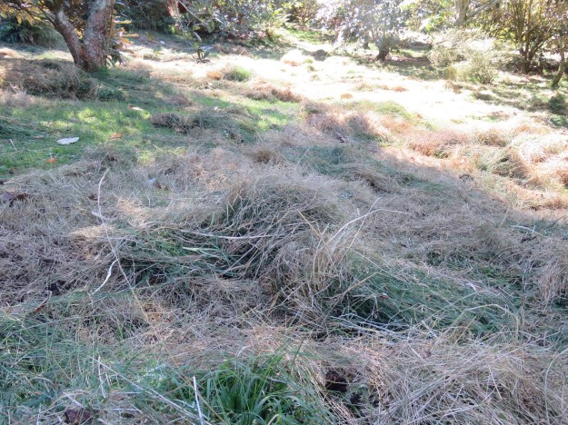 Applying related principles of lightening our footprints on the land to the ornamental garden is an entirely different topic because there is the added factor of aesthetics. We are spending a lot of time discussing and experimenting here but in the meantime, I can tell you that one man went to mow, went to mow the meadow. With our smart new sickle-bar mower because that is all that could handle the mountains of meadow grass. So much grass, in fact, that Mark was wondering if we should be teaching ourselves the old skills of building haystacks. This current and most major mowing is just the latest instalment of an ongoing experiment. How far can we change our gardening habits and tread more lightly on the land yet still be happy with the high aesthetic values we strive for in the garden? Time will tell.