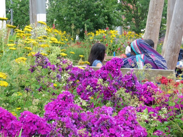 A prairie! Almost. Maybe. Though I admit I have never seen a genuine prairie. I think of early summer meadows as lush and green. These were more white and golden with a heavy population of grasses already in flower and seed and perennials that have naturalised within the environment. I bet a lot has been lost since 2012, but there are lessons to be learned in what can cope within this competitive environment. The charm within the detail was a delight.