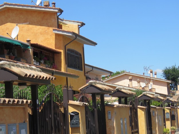 A day in modern suburban Italy was a revelation. This is Fiumicino near Rome airport. It is still suburbia but it is like an explosion of colour. All those flat planes of rendered plaster are painted. In colours other than grey. These are not even utility paint jobs. There are often different colours used and different paint finishes to add textural variation. It was a revelation to see a society where colour is part of daily life.
