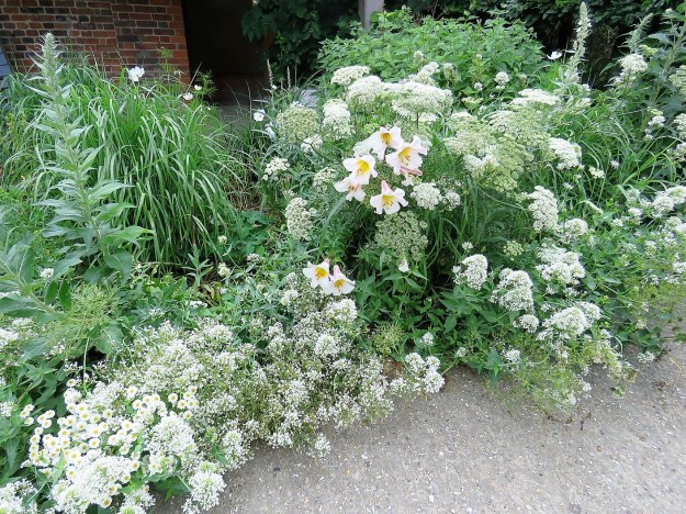 Parham House had a white border, too. Here the context was one of colour controlled, contemporary, herbaceous borders. These were generous borders, both wide and long, one in blues and another in yellows while others were mixes of hot colours. There was also rather a lot of white statuary. Similar to the smaller white garden at Bury Court, Parham’s white border is a summer feature of voluminous perennials – soft, full and lush.