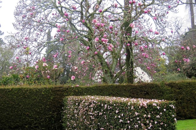 Our personal preference is for flowering hedges. Indeed, we pulled out a well-established and perfectly healthy buxus hedge to replace it with Camellia transnokoensis. It is all to do with winter blooming – the single camellia flowers provide pollen and nectar at a time when there are few other sources of this food. Our favourite camellia for clipped hedging is ‘Fairy Blush’, partly because it is our cultivar and the first camellia Mark ever named. It is also scented with the longest flowering time of any camellia we grow, coming out with the sasanquas in autumn and flowering right through to spring.