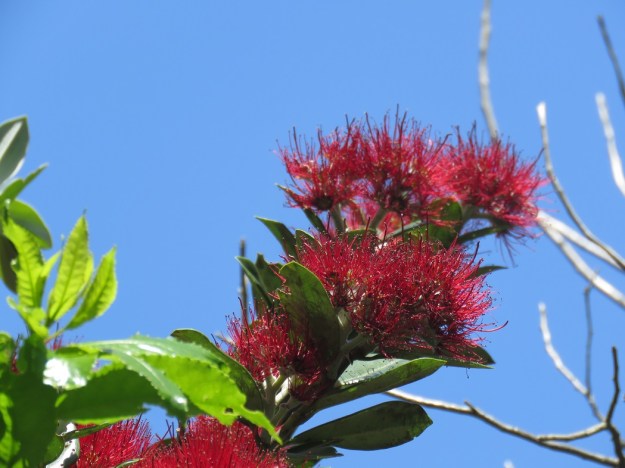 A New Zealand Christmas post would not be complete without a photo of what we call the New Zealand Christmas tree that grows all round the area where we live and flowers at this time – our pohutukawa or Metrosideros excelsa. We prefer it to the prickly holly.