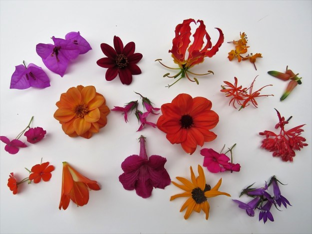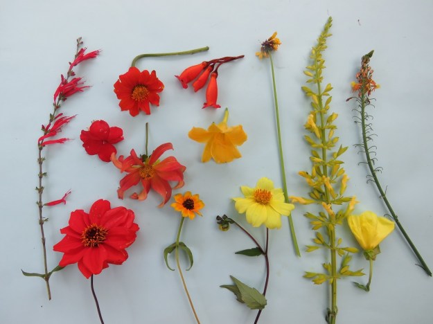 If you choose orange and purple, the look becomes very different – far more tropical and contemporary rather than the classic. It all comes down to personal colour preference in the end. I once contemplated the practicality of a garden in buff and pale blue – inspired by a gorgeous buff coloured rose. I wondered about using it with soft blues like the pretty nigella and the buff-brown grasses that seed down here. I realise in retrospect that my mental image did not incorporate green which would have altered the look entirely. Clearly the rose was already defoliated in my mind’s eye so that only the flowers were visible and I abandoned that idea altogether when I found that the rose was disease-prone and would need regular spraying to keep it looking anywhere near acceptable.