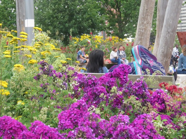 At my former home, yellow and orange just happened to work with the building and neighborhood, but I would not have chosen it myself. Nor would I have chosen the bright blue and yellow of my planter box downtown (a few years ago), but I was trying to be compatible with the facade of the bicycle shop that it is in front of. White is not an easy color to use alone. I do happen to like white and red! Perhaps someday I will have a garden in which it fits. That red and yellow in your first pictures looks like McDonald’s!
