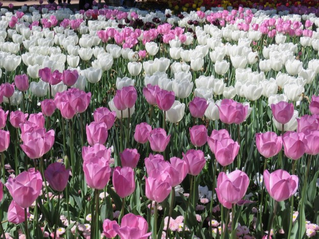 Red and yellow tulips in a massed bedding display at Floriade in Canberra