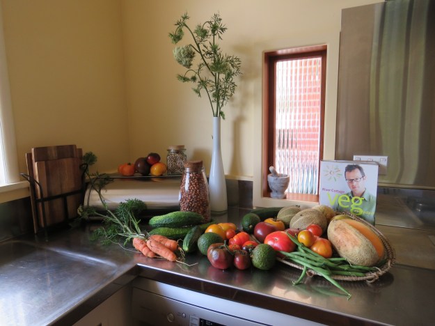 I cook. Mark grows vegetables and does dishes. It is a fair division of labour in our household. The vegetarian meals became more frequent and I found the recipe book ‘River Cottage Veg Every Day” by the inimitable Hugh Fearnley-Whittingstall. Hugh will never know it but he became our soul brother across the world. His loose approach to meal planning and recipes fitted our lifestyle like a glove.