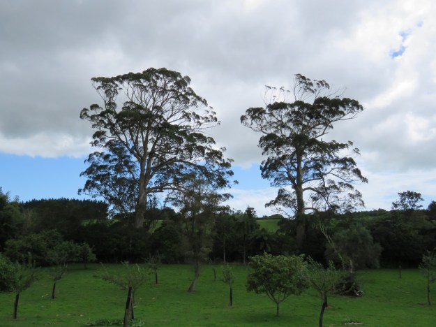 We know some of the history of these trees because they were planted by Mark’s great grandfather back in the 1870s. It seems likely that they were part of government-supplied seed or plants to trial alternative timber options for this recently settled colony. The early pioneers had already felled most of the accessible mighty kauri trees. We have a few gum trees, Pinus muricata and radiata dating from the same time, along with our remarkable rimu trees. He was a tree planter, was Thomas Jury, and this land had already been cleared of its native tawa when he took ownership.