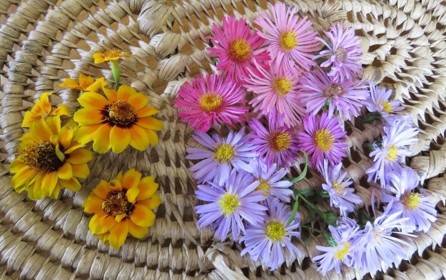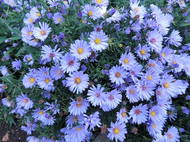 I went looking for daisies in the garden to illustrate this post but came up rather short. I did not go far enough, I tell you. I should have done some googling first. Their family of Asteraceae is huge. Not just the obvious asters which are so pretty in flower at this time of early autumn, but also cosmos, tagetes (marigolds), sunflowers, echinacea, rudbeckia, even dahlias. I was sad that one of our largest and showiest daisy plants, the spectacular Montanoa bipinnatifida (Mexican tree daisy) died last year. But Mark has just told me that we still have it. A seedling has emerged near the original plant. The monarch butterflies will get to feed on it again.