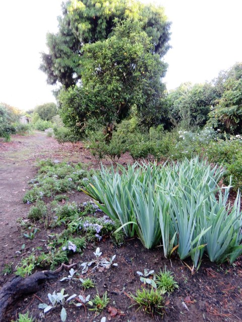 We describe the new caterpillar garden as a blank slate but we are still working around a beautiful Podocarpus henkelli and a grapefruit tree. We never get totally blank slates here.