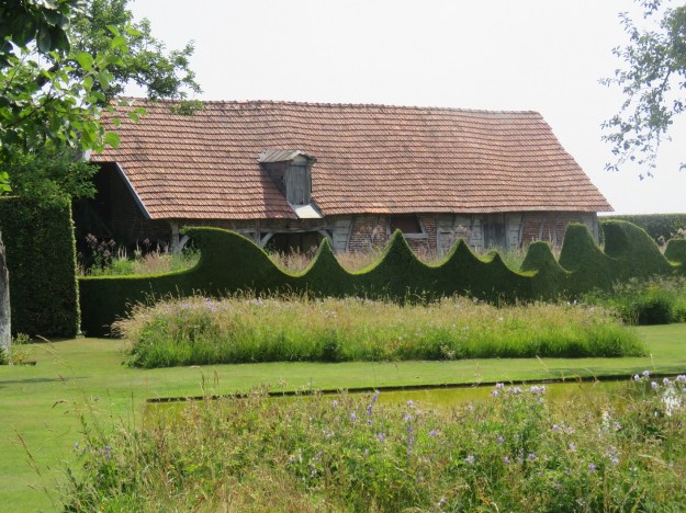 Overseas, Le Jardin Plume in Normandy (near, or near-ish, to Rouen) has stuck in my memory with great clarity. Other people have wave hedges but they tend to be of the undulating hummock style whereas Plume has these sharp-edged waves evocative of the sea breaking on the shoreline. The contrast with the loose plantings of tall, perennials is stark and effective. So too are their parterres of meadow an entirely new take on old forms. It is an innovative garden with some ideas that were completely fresh to us. Though, in the interests of accuracy, there were also areas which were not as unique.