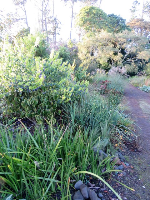 Now, in autumn, the whole area looks remarkably well furnished and under 13 months have passed. All that is needed is some tweaking. I want more blues in summer. Fortunately, Mark has a row of very good blue agastache in his vegetable garden (for the butterflies and bees, you understand) that I can raid. I am a bit worried about the phlomis which look overly enthusiastic out in the sun. They are far more restrained in their habits growing in the woodland gardens where we have them established. The Calamagrostris x acutiflora ‘Karl Foerster’ (feather reed grass) may prove to be too vigorous in our conditions. But that whole process of editing and tweaking and modifying as I learn is what gardening is all about.