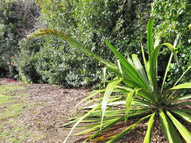 Behold Doryanthes palmeri! The giant spear lily from eastern Australia. It has never flowered for us before so the three metre, sturdy flower spike is a thrill even though it has yet to open. This particular plant is a nursery relic, by which I mean that it was not planted in this position. More, cast aside from nursery crops (we once produced a few to sell) and left to its own devices. Now the grass garden is planted beside it and it looks quite at home. This is just as well; each pleated leaf is about one and a half metres long and I don’t fancy moving it. I am hoping the flowers will open in the next week or so.