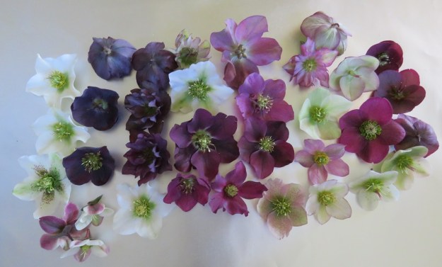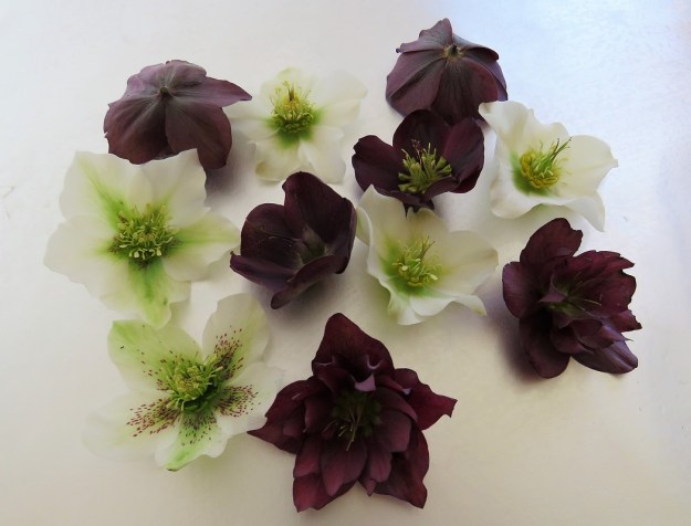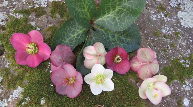 I meant to do a round-up across the different hellebore types we grow here this year but I left my run too late. There is more to hellebores than just the most common H. orientalis types and some of the other species and inter-species crosses are also interesting and fill a different niche in the garden. But I had to make do with mostly H. orientalis and a few hybrids for today’s picking.