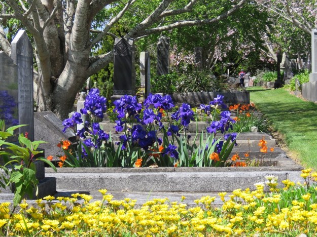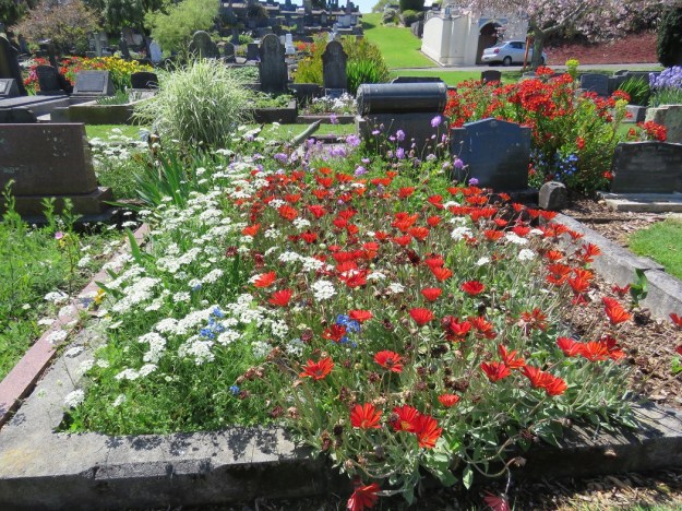 Finally, it was back to the graveyard (aka Te Henui Cemetery) because Sydney-based daughter was with me and she expressed a desire to see it. It is so pretty, so vibrant, and so unexpected. It is part of the garden festival this week. I asked one of the volunteers yesterday how it was going with garden visitors. “They seem to like it,” she said, in a self-deprecating way. “They arrive with very low expectations since it is a cemetery, so it is not hard to please them.” It is better than that. Do visit, if you are in the area.