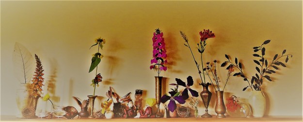 The photo at the top was inspired by the gentle winter Christmas scene on Dan Pearson’s site – a beautiful composition in greys, creams and white. A New Zealand Christmas is different and filled with flowers in many hues. I made my little arrangement and Mark walked in declaring, “Oh, a pixie has been here.”
