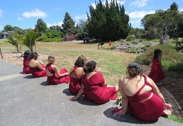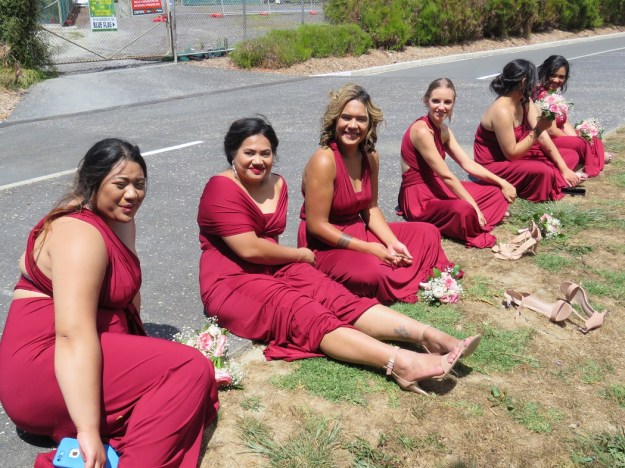 Other than that pretty scene, it was the waiting bridesmaids that most took my fancy. It was a hot afternoon and they must have found their stiletto heels a little taxing for prolonged standing around. I assume they were waiting for the bride but I didn’t quiz them. Now I think about it, I only saw a very large wedding party (there were pretty flower girls, another couple of bridesmaids and a fairly large cluster of well-turned-out young men standing in the shade as well) but no wedding guests. I was more concerned about the missing bride but now I wonder where the guests for this large wedding were hiding out. This will remain a mystery.