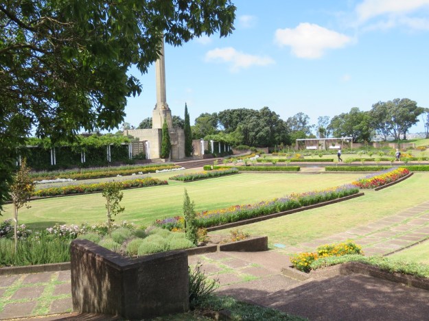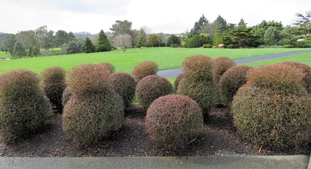 On the seaward side of the monument, there is a breath-taking view. Do garish white painted seats and mingy, narrow borders of a white carpet rose do anything to enhance this area? Well, no, they don’t. And I state that as a fact, not an opinion. I get the formal garden concept for the whole area but surely it could be done more creatively? I would want to use native plants at the front to blend out to the wilder areas at the perimeter and then out to wider seascape. Maybe something like clipped Muehlenbeckia astonii could be used as a formal planting, as shown at its best at Auckland Botanic Gardens.