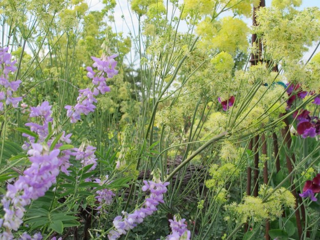 On the leeward side, there is a large protected basin with loads of aged concrete construction and a formal pool. They are pretty good bones to start with but standard Iceberg roses and stripes of different bedding plants that are little more than ankle height? I assume it is buxus hedging but I can’t guarantee that because I was so unutterably bored by the plantings that I did not look closely. I am pretty sure I also spotted lavender past its best and cosmos that was over and dead.