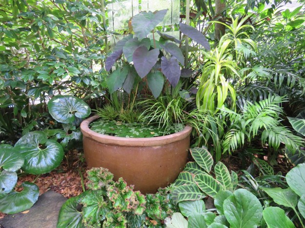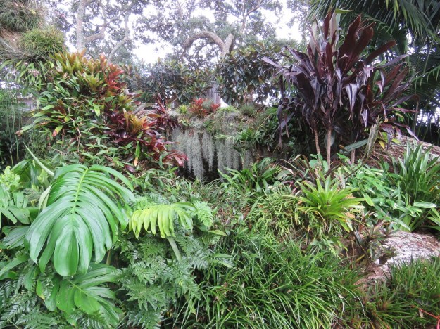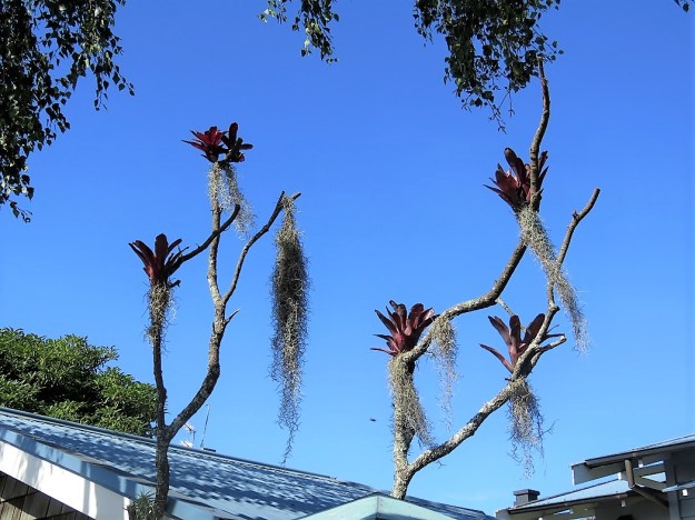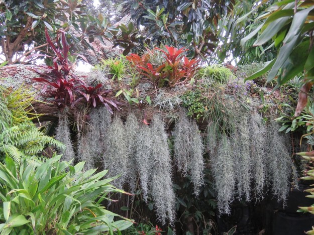 The light was too bright and the shadows too deep to do justice to this cluster of bromeliads but I particularly noted it because it was a counterpoint to the vibrant and bright use of bromeliads mentioned in the first post of these two. This was restrained and understated but maybe more charming for that.