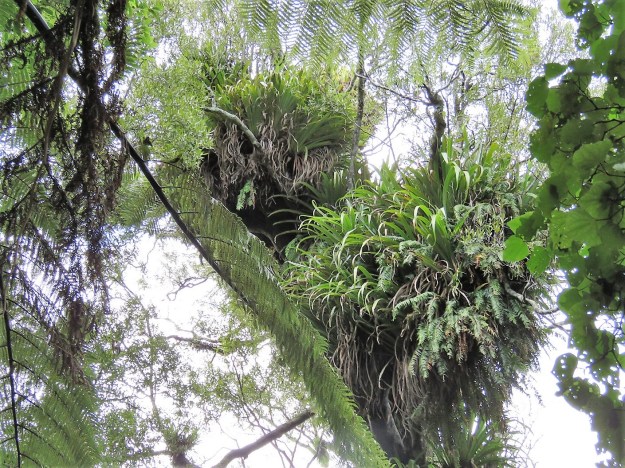 I photographed it earlier because of the prodigious quantity of epiphytes that had built up over the years. In our mild, humid climate, epiphytes thrive. Much of this lot was Collospermum hastatum but these long-established epiphytic colonies are an entire matrix of naturally occurring plants. The problem is that there is a huge weight in them that eventually brings down the branch, and sometimes the whole tree in the process. It is just part of the cycle of nature.