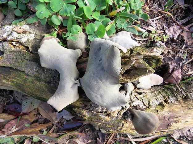 It is a fungus, Auricularia polytricha, and it played a very important role in the European settlement of Taranaki 150 years ago. Mark was raised knowing it as ‘pigs’ ear fungus’. I shall call it wood-ear fungus if I can not commit the Maori name – hakekakeka – to immediate memory. Most of the common names appear to have an ear reference in them, though the unfortunately named ‘Jew’s ear fungus’ is a different species of auricularia. The Chinese call it mu-er.