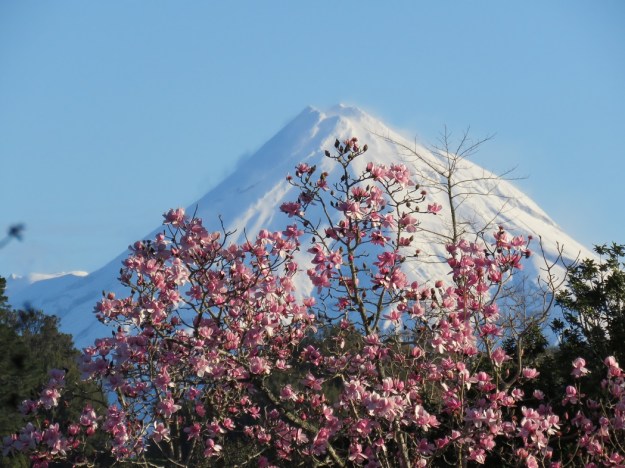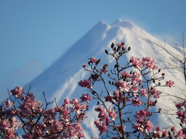 It was perhaps the desire to post more photos of our Magnolia campbellii and the mountain that motivated me to write about te mounga.