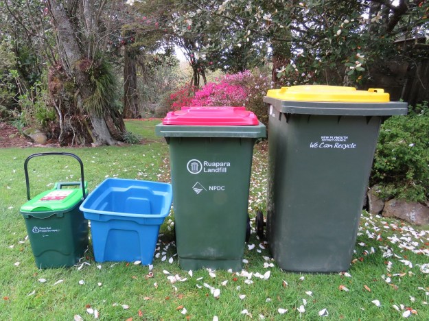 We have had two new rubbish receptacles delivered and our rates (local council taxes) have increased accordingly. I am grateful that we have a large, double carport where we can hide these in the deepest recesses – I pulled them out to pose them with a pretty background – but I can see that the sheer amount of space they take up must be a real problem for many urban dwellers, particularly those in small units or with minimal outside space.