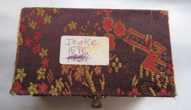Astonishingly, Harry gave us Drake’s small balls. ‘Somebody has put them in a Chinese box at some stage,’ he told me. For the avoidance of doubt, he had put a sticker on the bottom. ‘Drake 1590 1739’ the sticker reads. Bit of an oops there with the date, apparently, though we do not know whether it was the pendulum or Harry’s research that made the mistake.