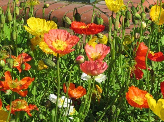 Iceland poppies do not come from Iceland. I finally checked and in fact they come from the chilly areas of Europe, Asia and North America – sub polar territory, so presumably alpine meadows. In the wild, Papaver nudicaule (nude because of its bare stem which makes it a good cut flower) are pretty much all white or pale yellow. The other colours are recessive genes which have been brought out by plant breeding – presumably line breeding which is selecting down the generations of individual plants to pick out the stronger colours until those coloured genes have come to the fore.