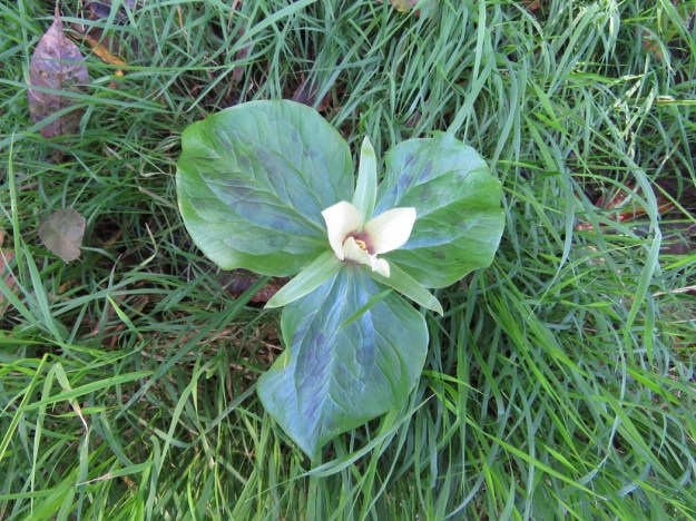 These trilliums represent a minor triumph in Mark’s experiments with plants he can establish in meadow situations. We have plenty of trilliums in our woodland gardens but establishing them in a cultivated garden is different to getting them to naturalise on his bulb hillside. When I say “naturalise”, I mean that they are now sufficiently well established to return each year, able to compete with the grass and uncultivated soil. They are not actually increasing yet but they are at least established.