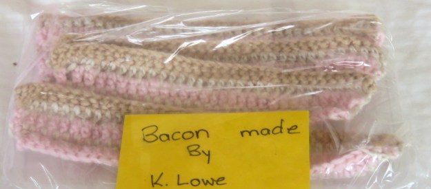 The window on the other side of the locked door contains an eclectic mix of seaside accoutrements plus penguins. A knitted diorama, no less. This may appeal more to children but it was the unexpected cultural and historical context of the knitted meats that took my fancy.
