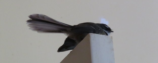 We too seem to be visited by fantails inside each year. All those insects hiding in corners of the ceilings. They seem to be very interested in that other fantail that lives in the mirror above the fireplace. I like them out in the garden. They always seem interested in what you are doing out here.