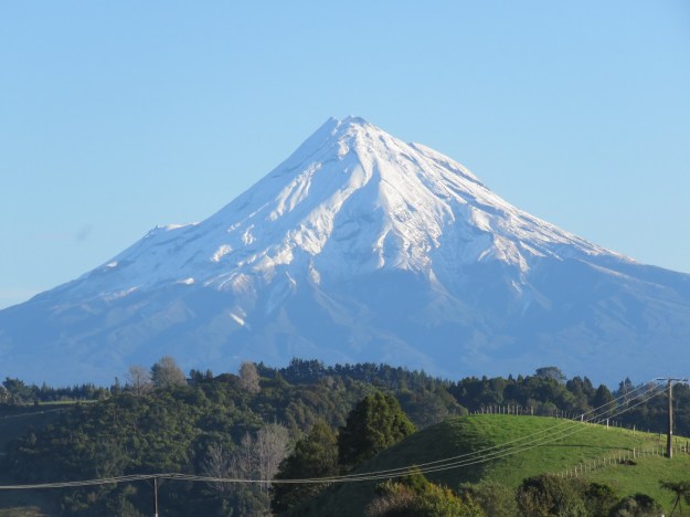 Te mounga – Mount Taranaki – with its first major snowfall of the year this week