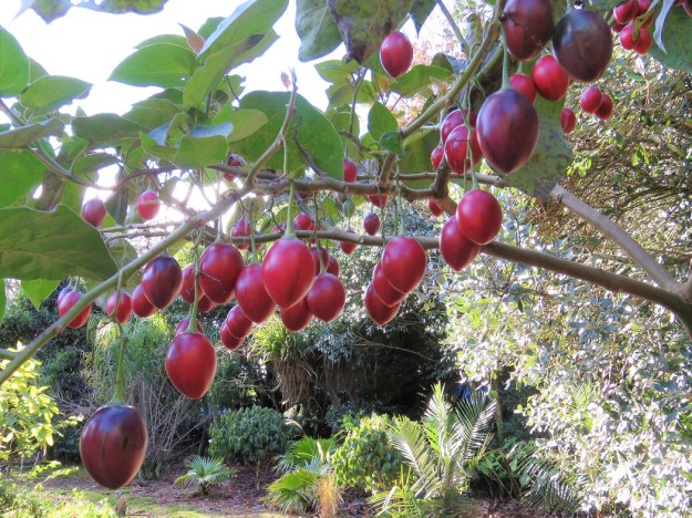 For red, may I give you the tamarillo plant – self-seeded but cropping very generously. It is another of those fruits from South America that we have taken over. Botanically Solanum betaceum, some of us are old enough to remember when they were still called tree tomatoes. True to form, it was a New Zealander who dreamed up the name tamarillo back in the late 1960s. I did not know until now that the wild forms are commonly yellow or purple and the red form we regard as the norm is another NZ creation dating back to the 1920s. I feel we may have hijacked this fruit in a manner similar to the kiwifruit which is actually Chinese. So now you know, too.