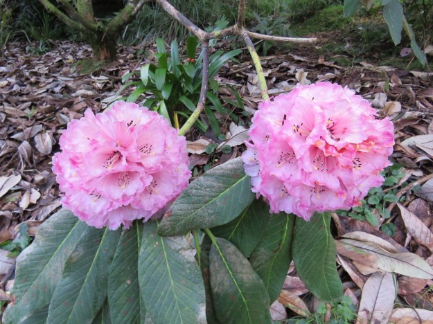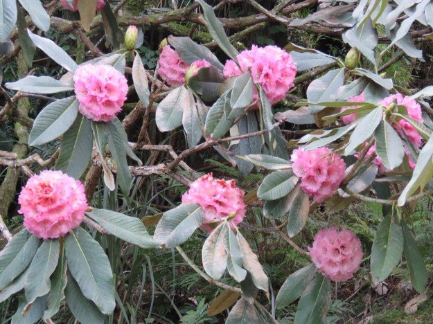The big-leafed rhododendrons flower now, not at the beginning of November. This is Rhododendron protistum var. giganteum.