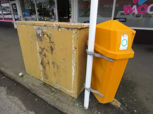 My local town of Waitara is widely regarded as … fairly unprepossessing, shall I say? But two sights yesterday made me smile. Blink and you might miss the first one. It is in the bottom left of the photo.