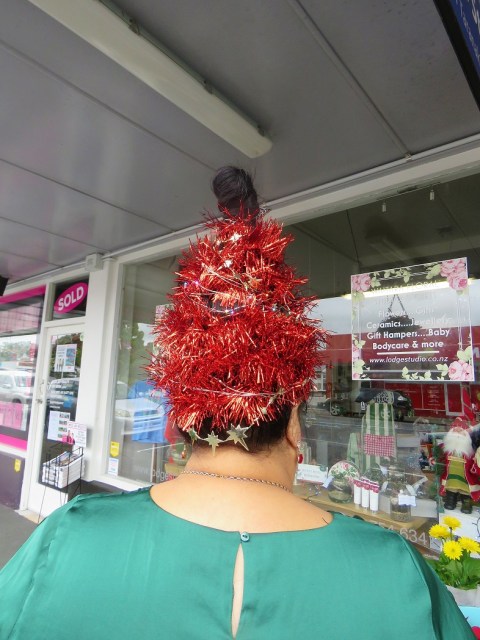 Along came a woman with her hair wreathed in Christmas tinsel. I asked her if I might photograph her from behind, to preserve her anonymity. Though, upon reflection, you don’t go out adorned like that if you wish to remain anonymous. She turned so I could photograph the rear view and then told me I could photograph the front if I wished. Is she not both brave and beautiful?