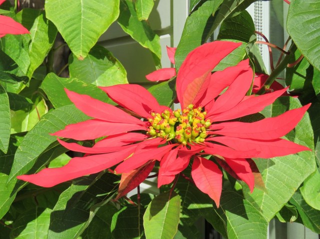 We do not have a poinsettia here in any shape or form, though I did once try planting out a Christmas houseplant whereupon it just became insignificant for reasons explained in the second link above. Had I been more patient, it may have ended up looking as exotic and large as our friend’s garden specimen.