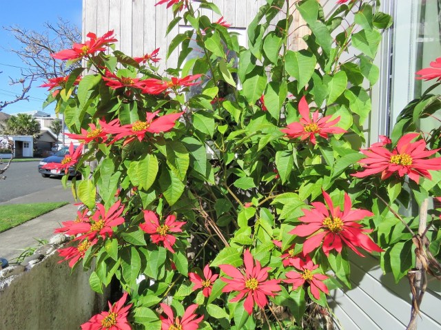 But I do not appear to have shared these photos of a splendid poinsettia flowering in front a friend’s house in New Plymouth in June this year. I think he told me it was just a house plant he had put into the garden where it grew and grew.